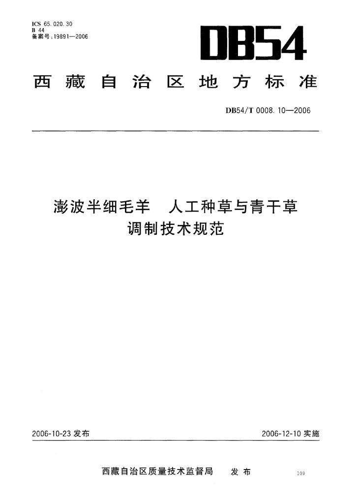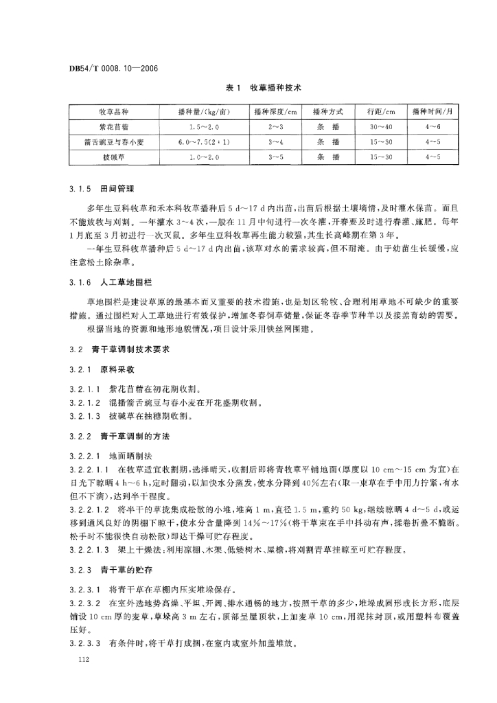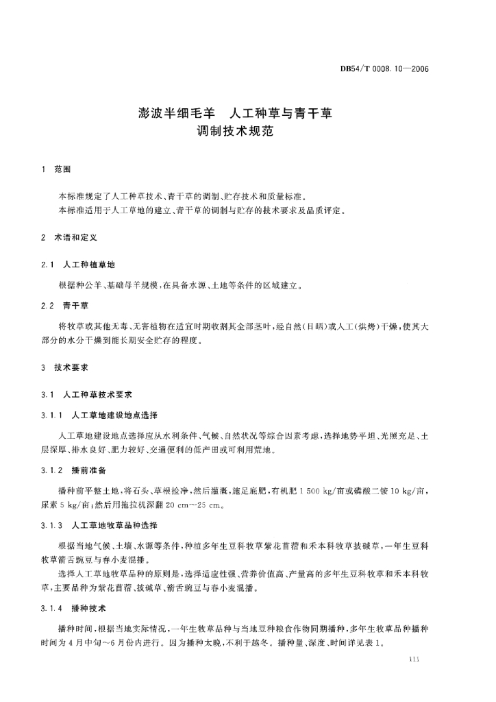 DB54/T 0008.10-2006 澎波半细毛羊 人工种草与青干草调制技术规范