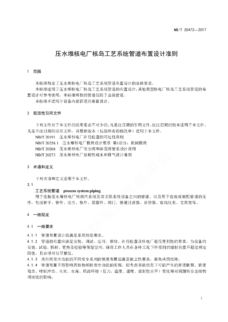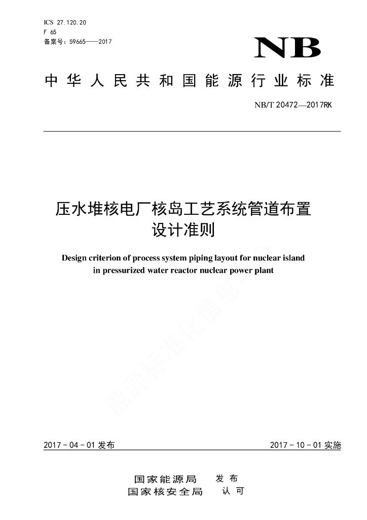 NB/T 20472-2017RK 压水堆核电厂核岛工艺系统管道布置设计准则