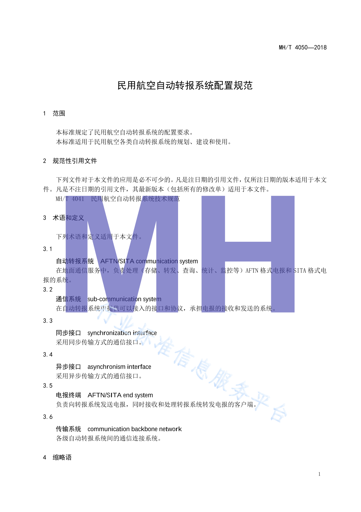 MH/T 4050-2018 民用航空自动转报系统配置规范