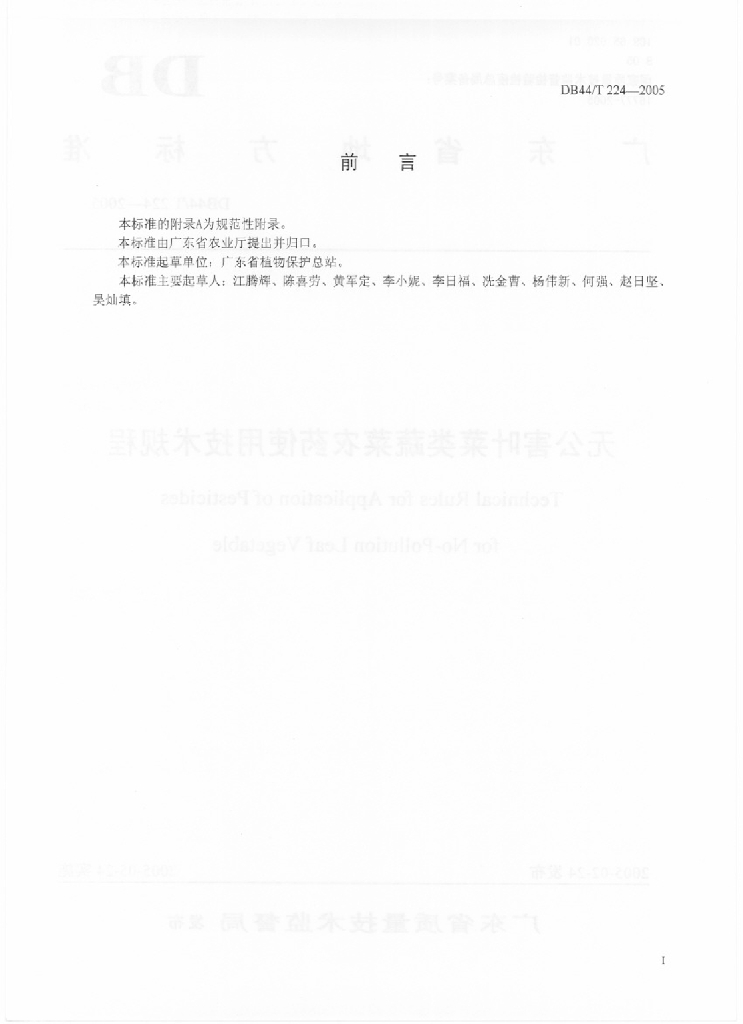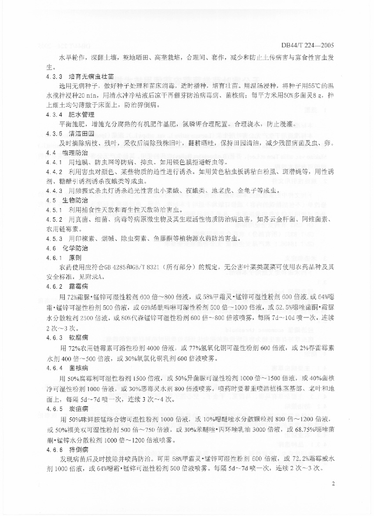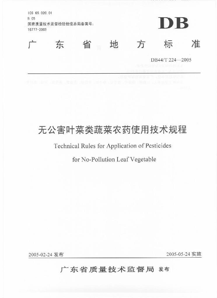 DB44/T 224-2005 无公害叶菜类蔬菜农药使用技术规程