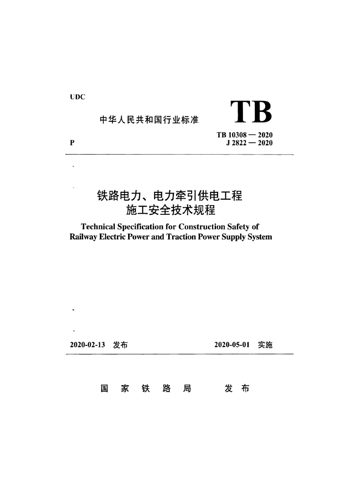 TB 10308-2020 铁路电力、电力牵引供电工程施工安全技术规程