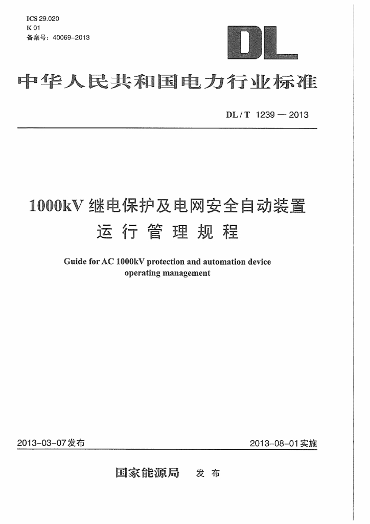 DL/T 1239-2013 1000kV继电保护及电网安全自动装置运行管理规程
