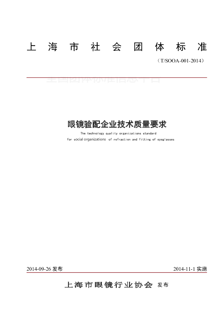 上海市眼镜行业协会、上海三联(集团)有限公司、上海小林眼镜有限公司、上海红星眼镜有限公司、上海巴黎三城眼镜有限公司、上海依视路光学有限公司、豪雅(上海)光学有限公司、上海市黄浦区质量管理协会、上海医药高等专科学校