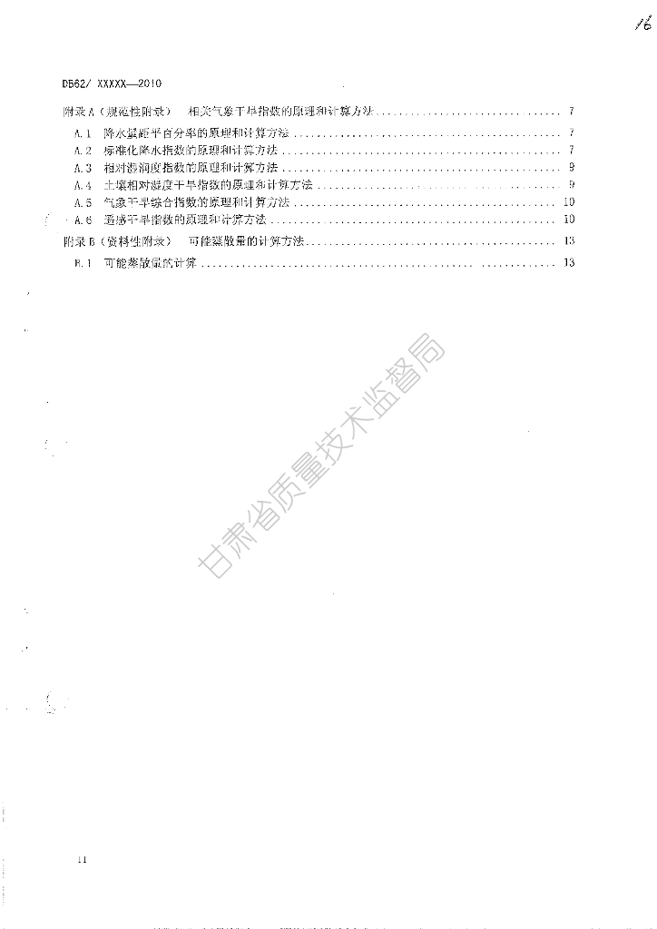 DB62/T 2034-2011 甘肃省气象干旱等级