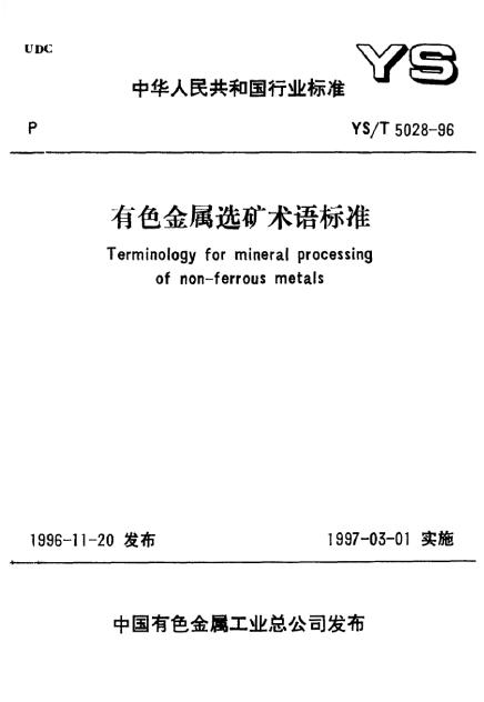 YS/T 5028-1996 有色金属选矿术语标准