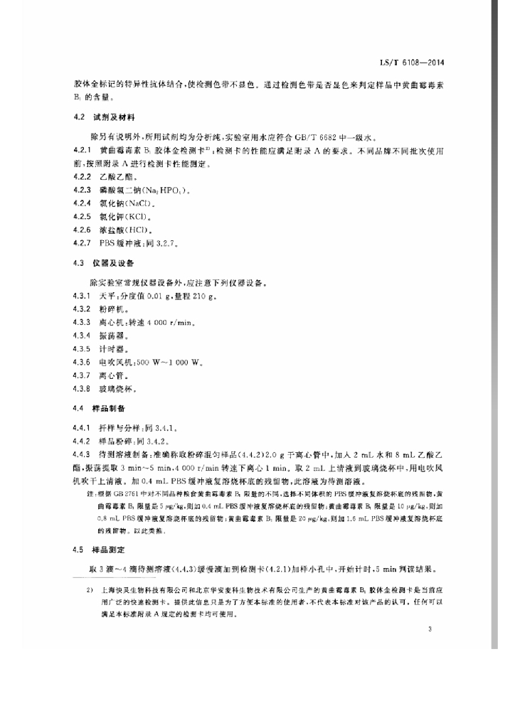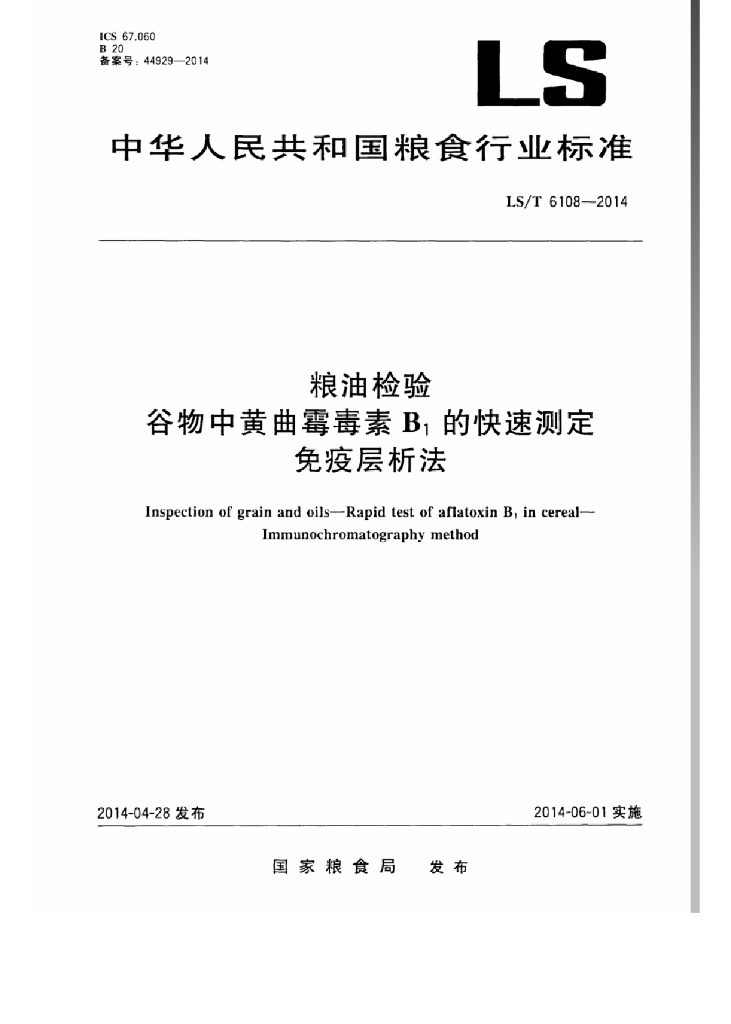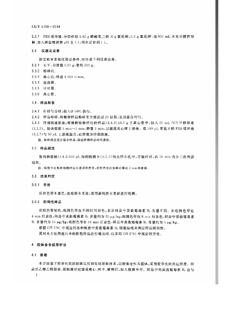 LS/T 6108-2014 粮油检验 谷物中黄曲霉毒素B1的快速测定 免疫层析法