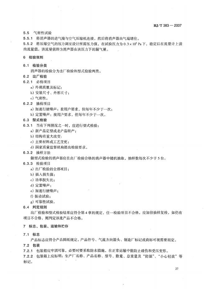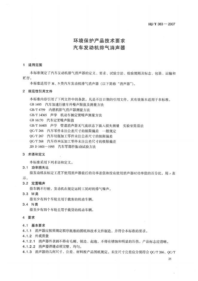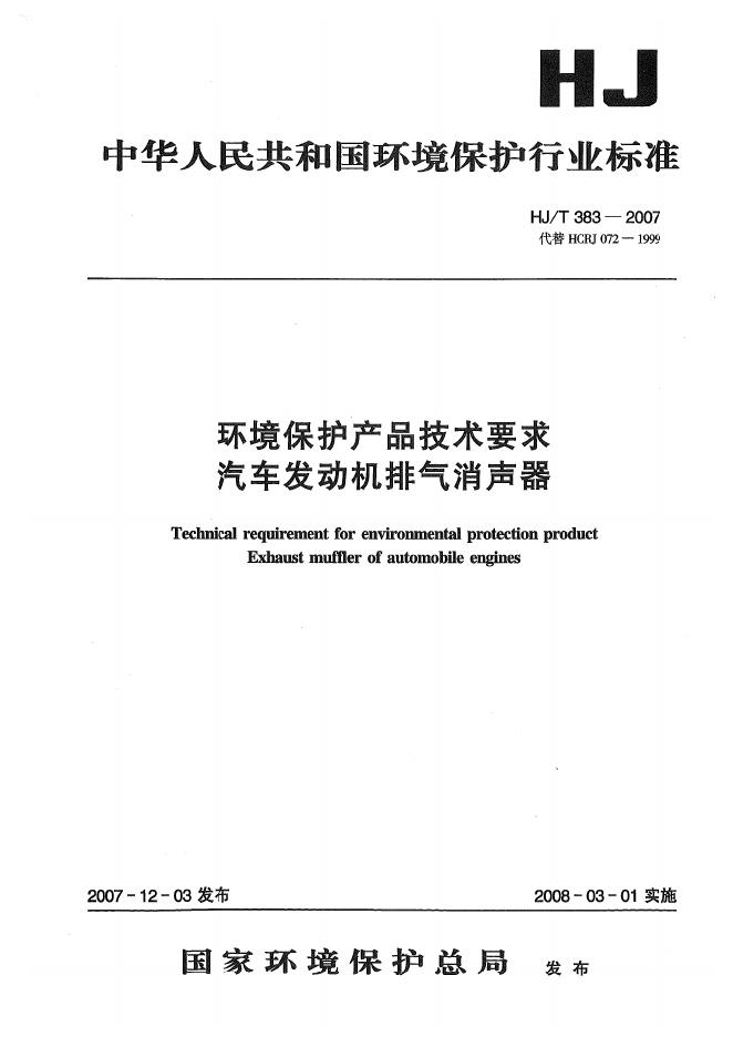 HJ/T 383-2007 环境保护产品技术要求 汽车发动机排气消声器