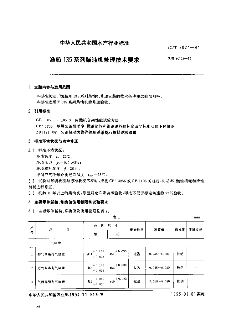 SC/T 8024-1994 渔船135系列柴油机修理技术要求