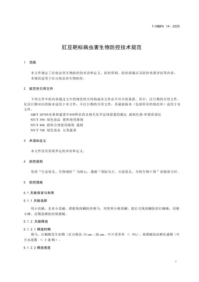 T/CQGFA 14-2025 豇豆靶标病虫害生物防控技术规范