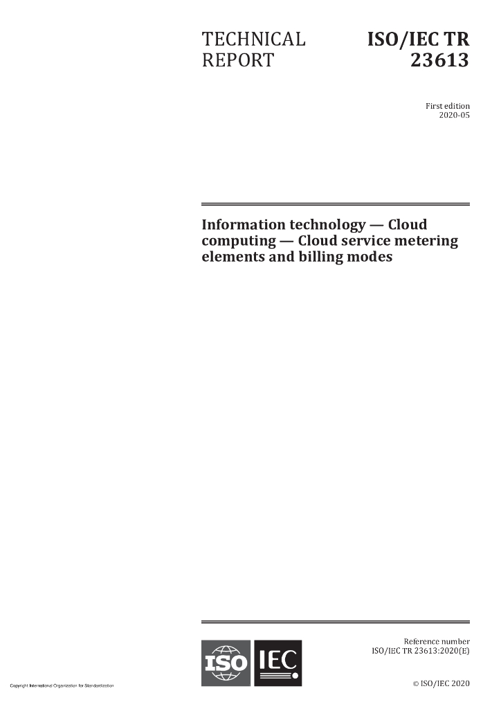 ISO/IEC TR 23613-2020 信息技术 ——云计算——云服务计量要素和计费模式