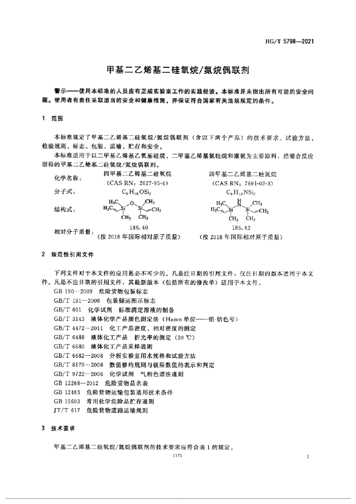 HG/T 5798-2021 甲基二乙烯基二硅氧烷氮烷偶联剂