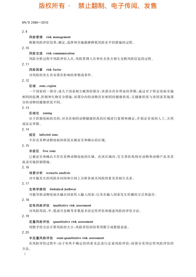 SN/T 2486-2010 进出境动物和动物产品风险分析程序和技术要求