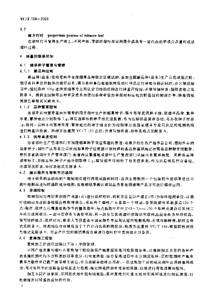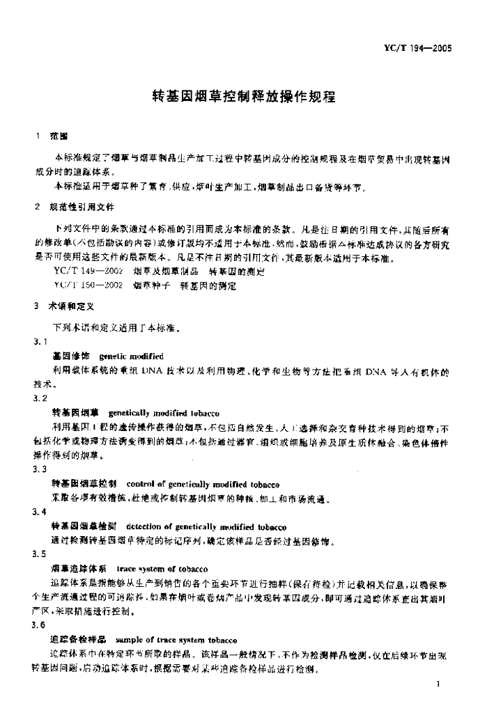 YC/T 194-2005 转基因烟草控制释放操作规程