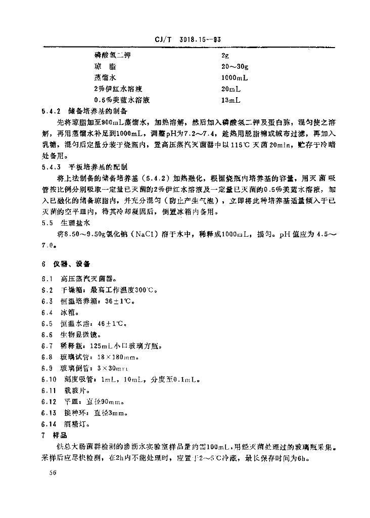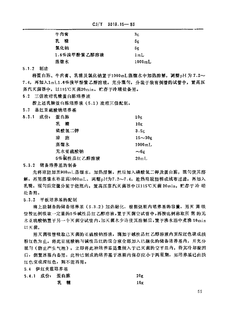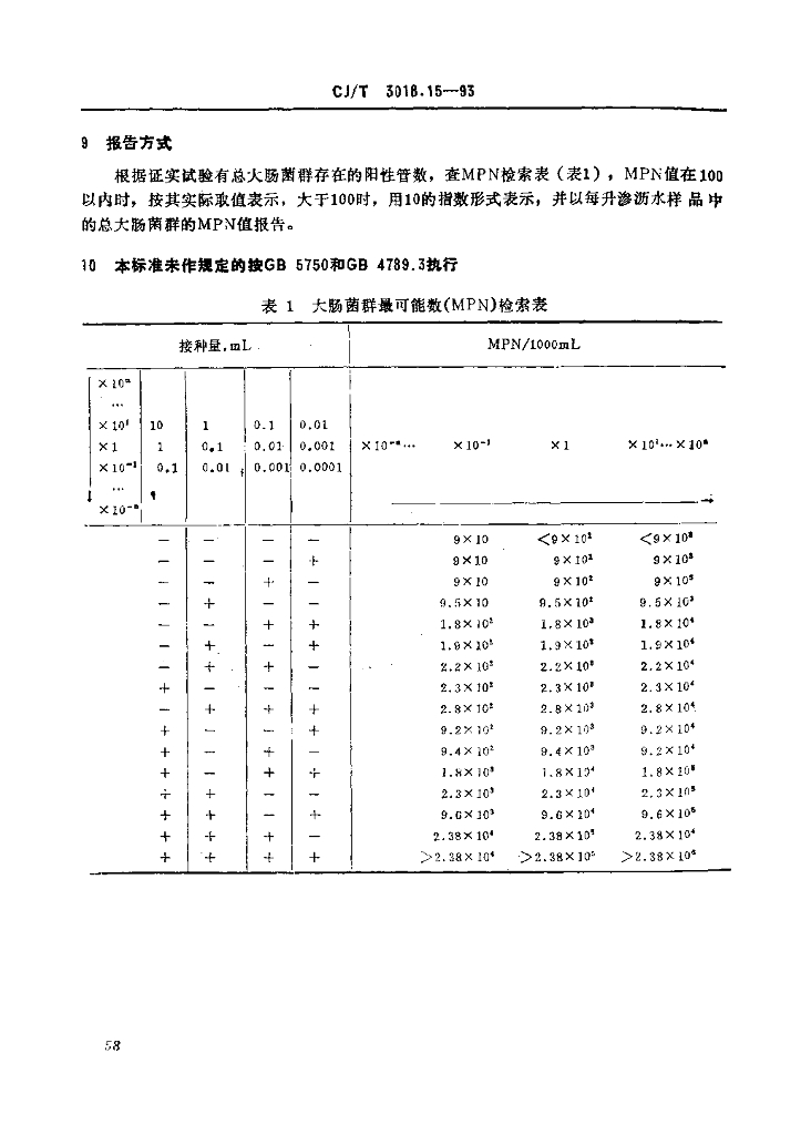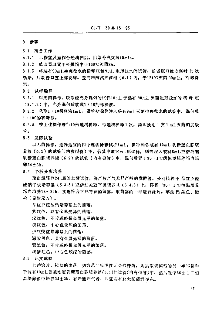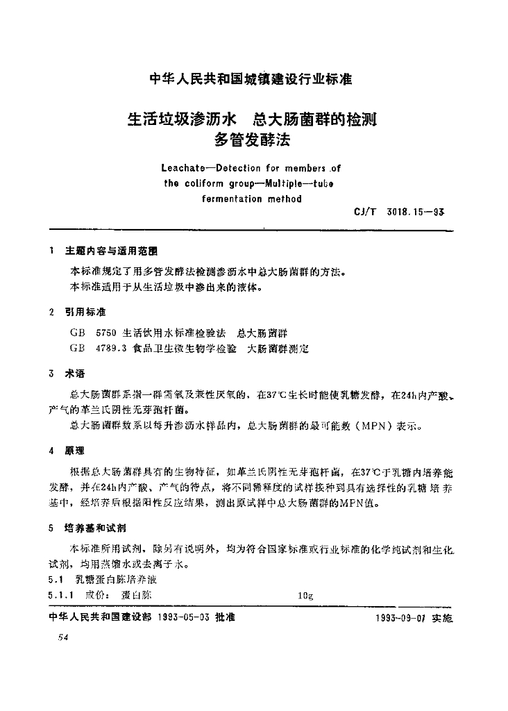 CJ/T 3018.15-1993 生活垃圾渗沥水 总大肠菌群的检测 多管发酵法