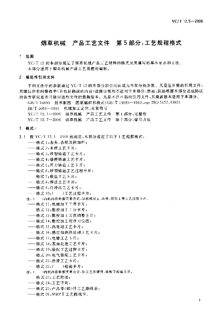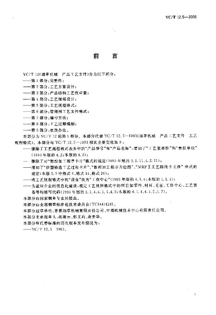 YC/T 12.5-2006 烟草机械 产品工艺文件 第5部分工艺规程格