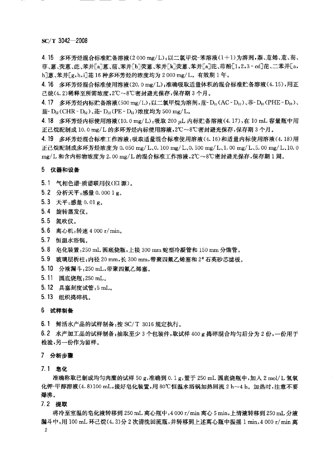 SC/T 3042-2008 水产品中16种多环芳烃的测定 气相色谱-质谱法