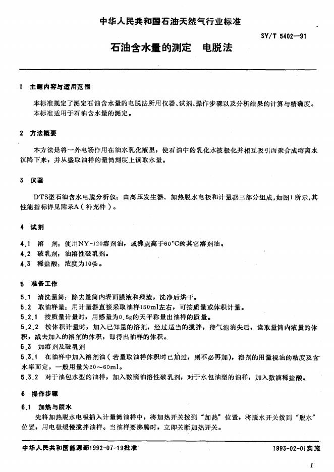 SY/T 5402-1991 石油含水量的测定 电脱法