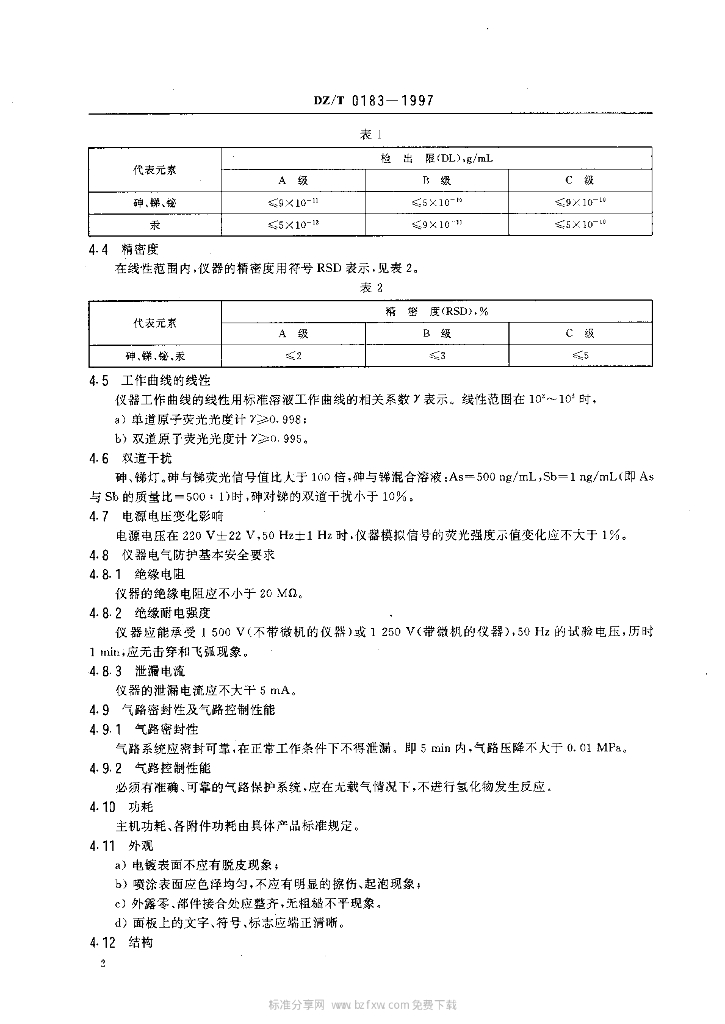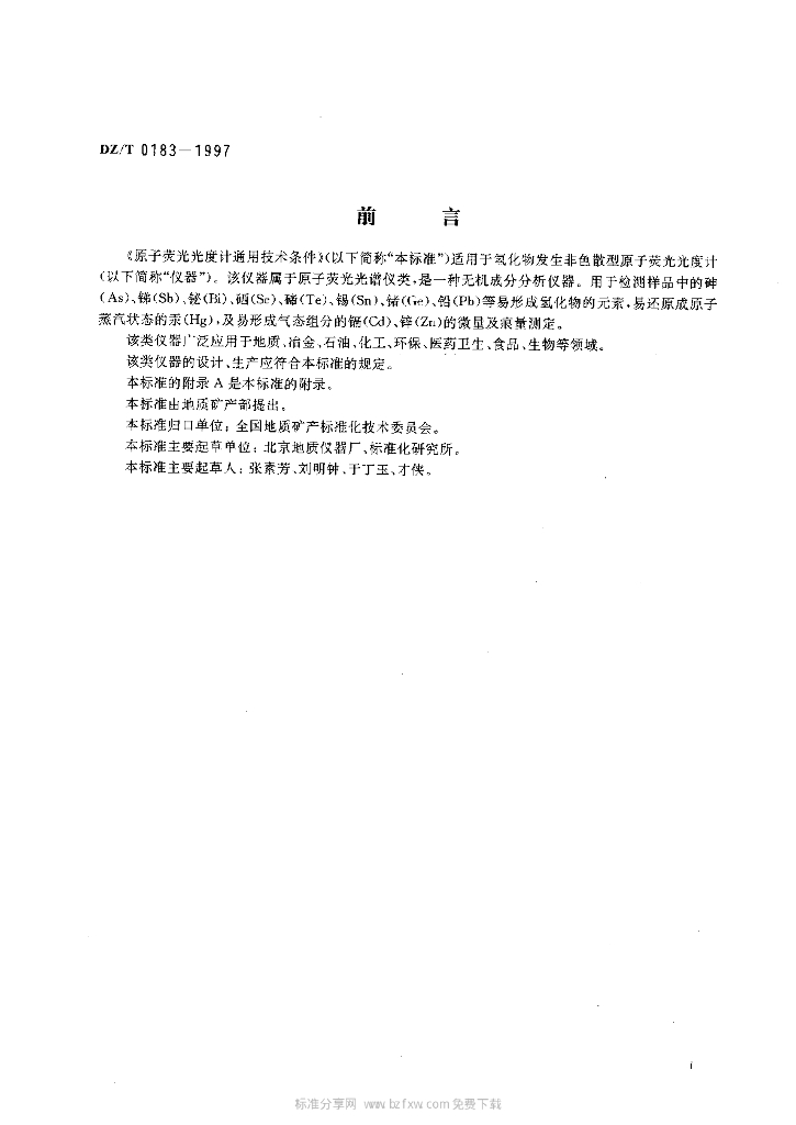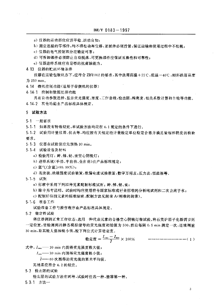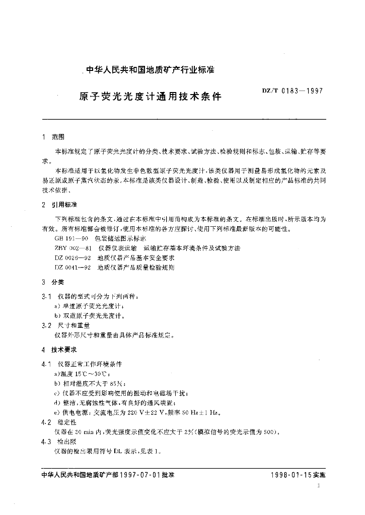 DZ/T 0183-1997 原子荧光光度计通用技术条件