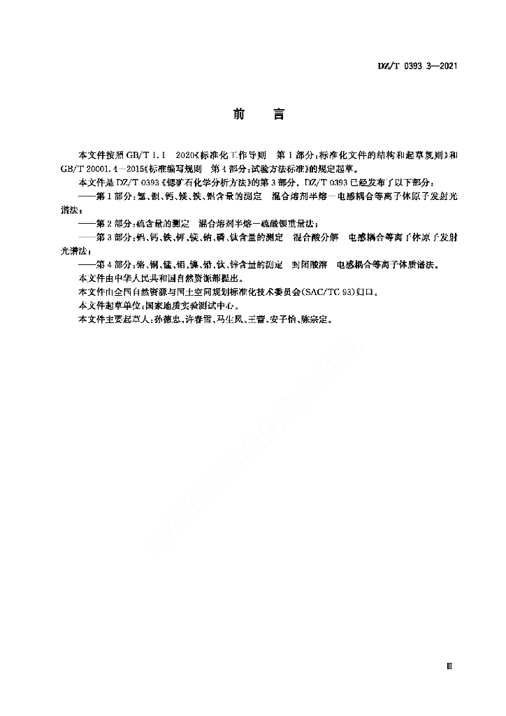 DZ/T 0393.3-2021 锶矿石化学分析方法 第3部分:铝、钙、铁、钾、镁、钠、磷、钛含量的测定 混合酸分解-电感耦合等离子体原子发射光谱法