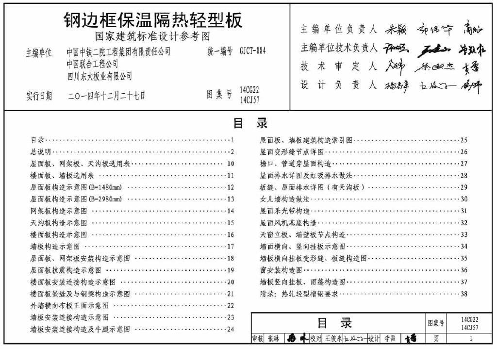 14CG22 钢边框保温隔热轻型板参考图集