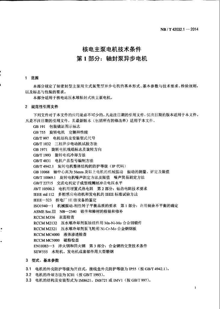 NB/T 42032.1-2014 核电主泵电机技术条件 第1部分:轴封泵异步电机