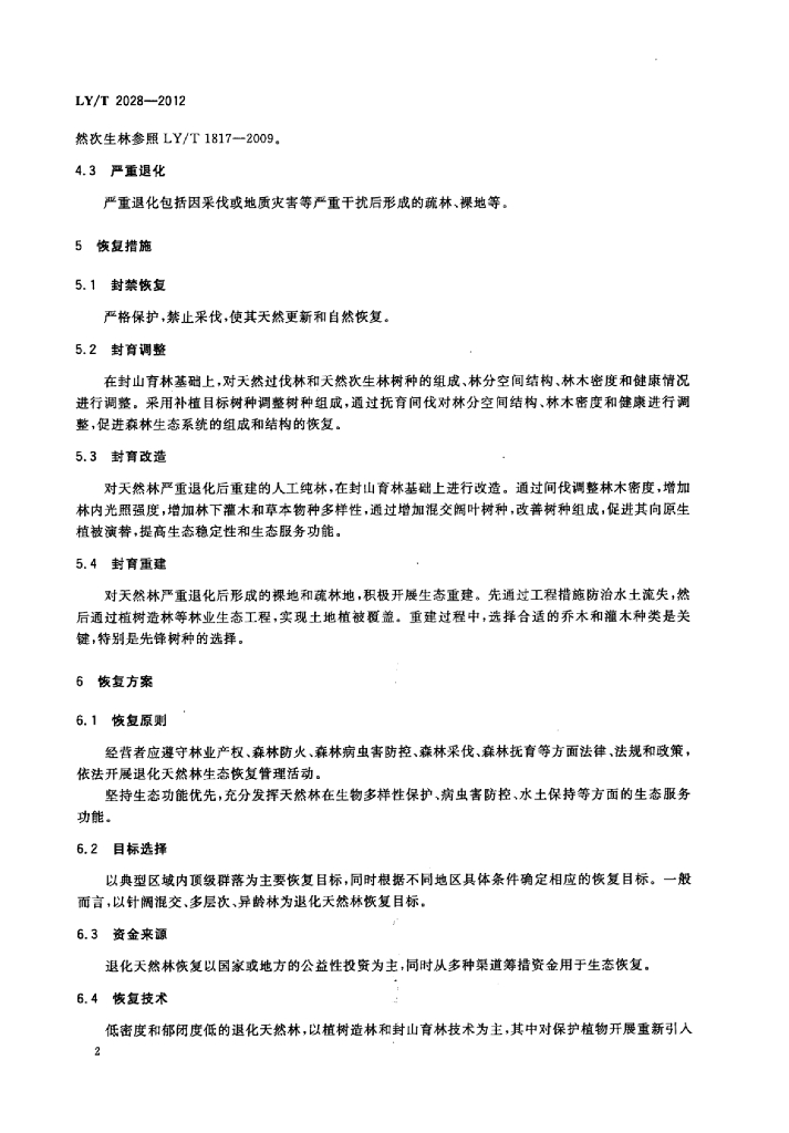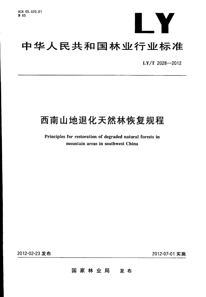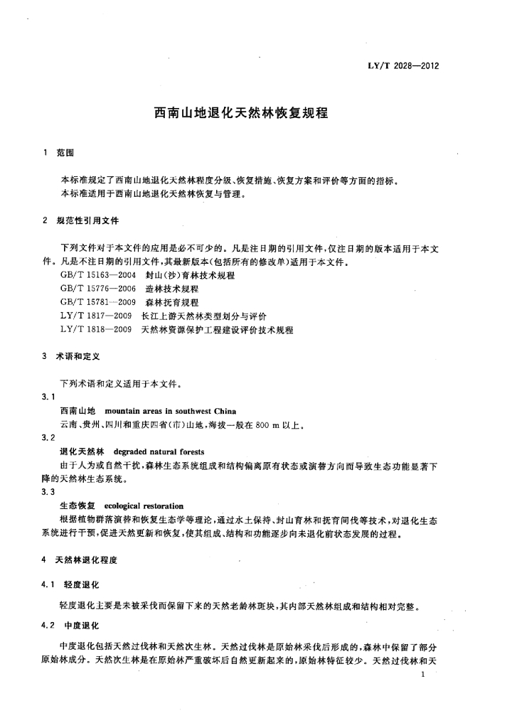 LY/T 2028-2012 西南山地退化天然林恢复规程