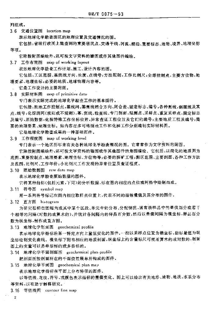 DZ/T 0075-1993 地球化学勘查图图式、图例及用色标准