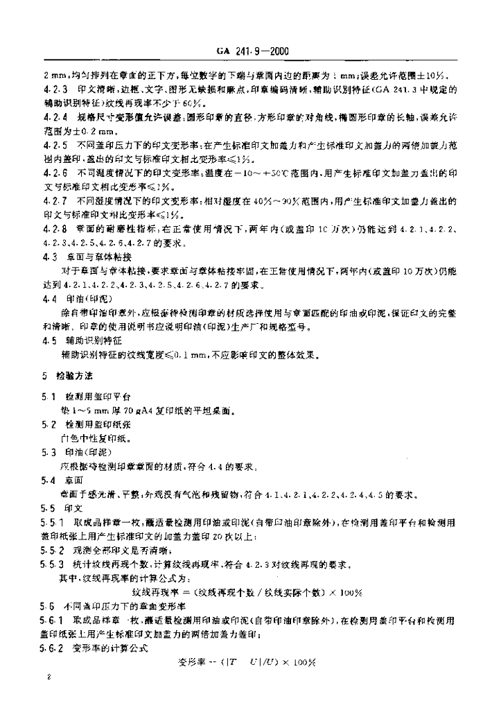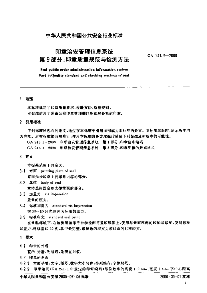 GA 241.9-2000 印章治安管理信息系统 第9部分:印章质量规范与检测方法