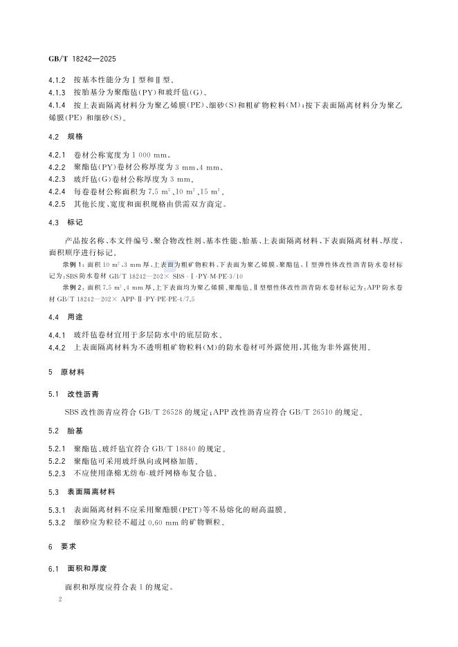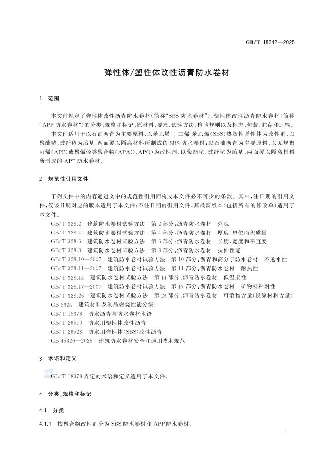 GB/T 18242-2025 弹性体/塑性体改性沥青防水卷材