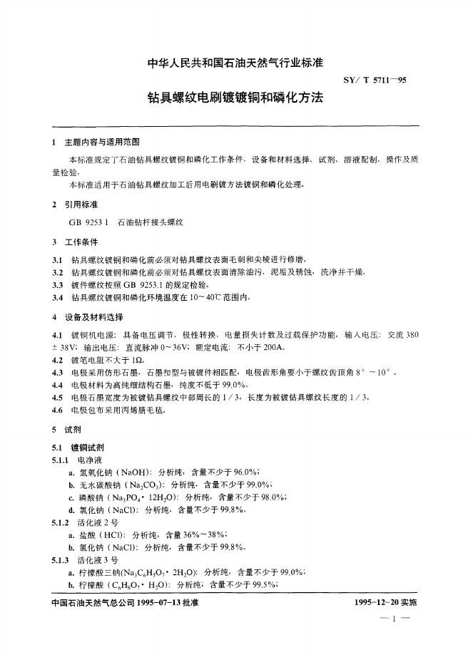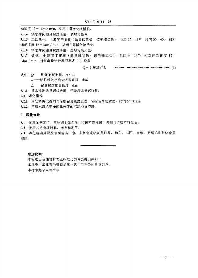 SY/T 5711-1995 钻具螺纹电刷镀镀铜和磷化法