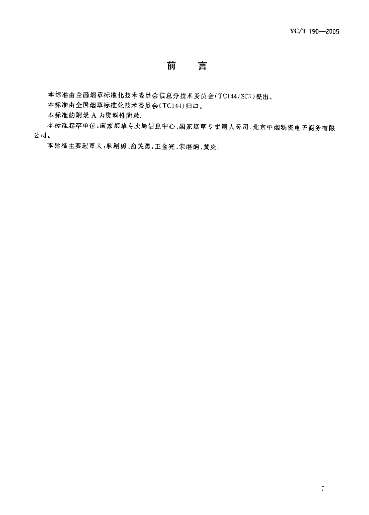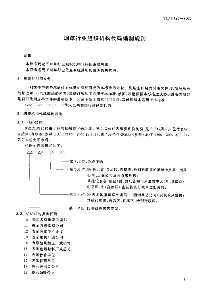 YC/T 190-2005 烟草行业组织机构代码编制规则
