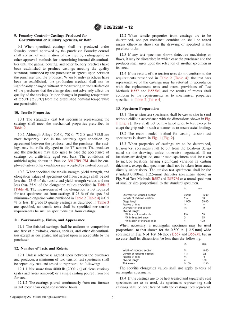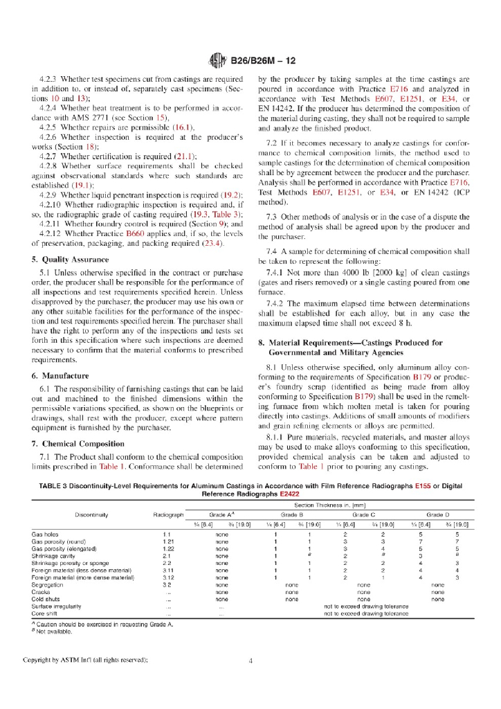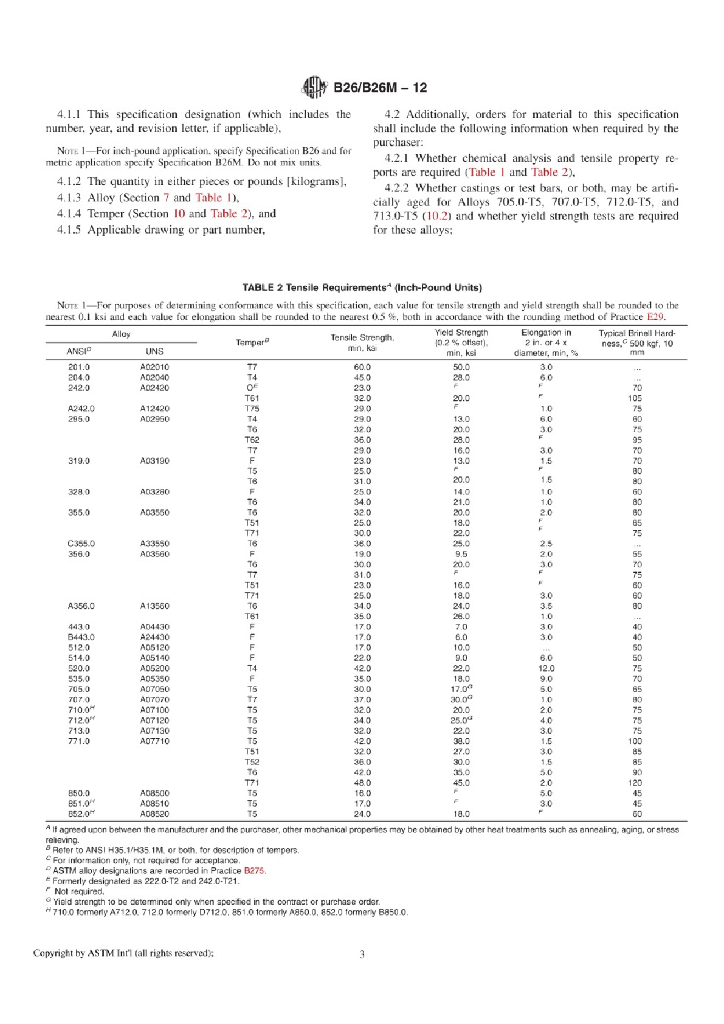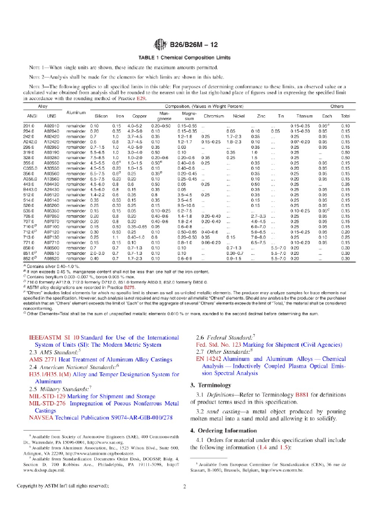 B26/B26M-12 Standard Specification for Aluminum-Alloy Sand Castings