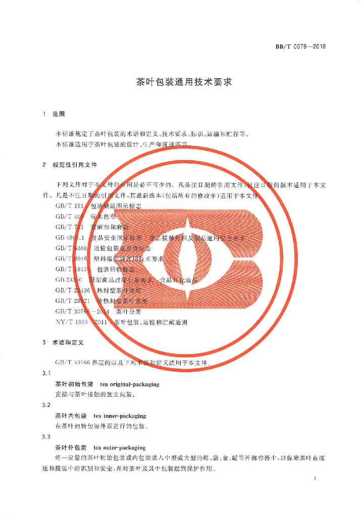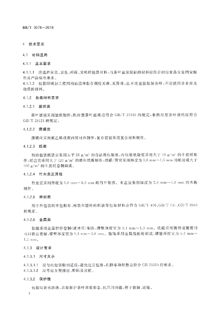 BB/T 0078-2018 茶叶包装通用技术要求