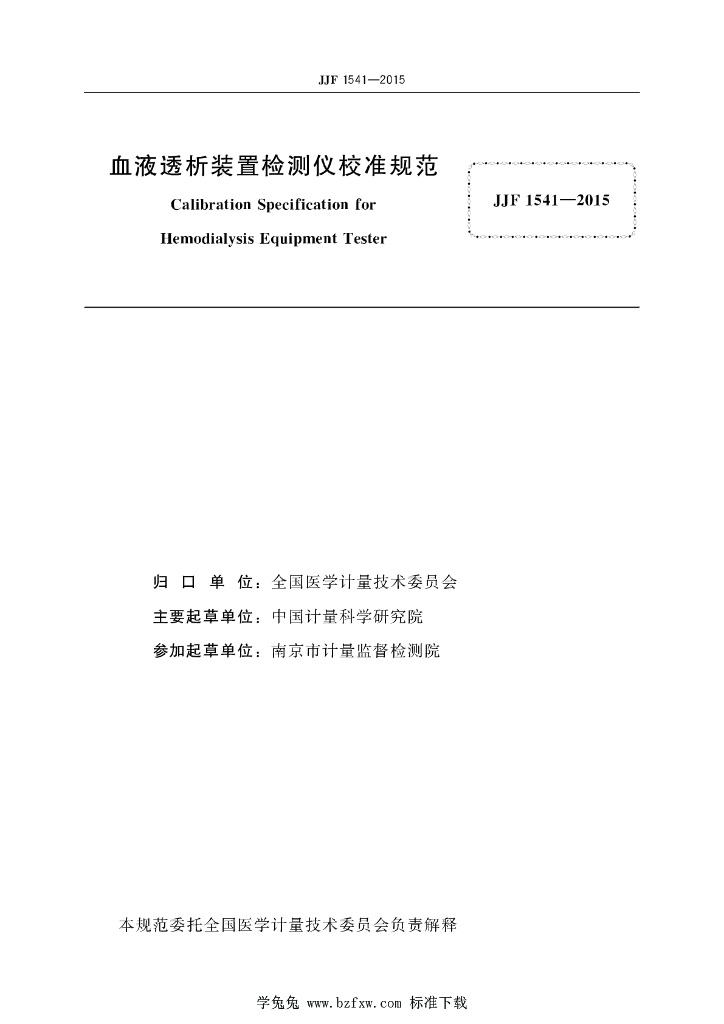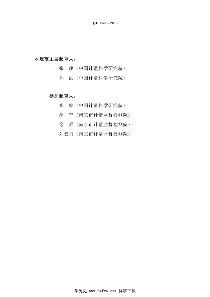 张璞(中国计量科学研究院)、孙劼(中国计量科学研究院)、李姣(中国计量科学研究院)、胡宁(南京市计量监督检测院)、徐昇(南京市计量监督检测院)、刘云舟(南京市计量监督检测院)