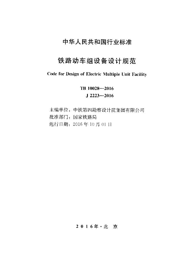 TB 10028-2016 铁路动车组设备设计规范
