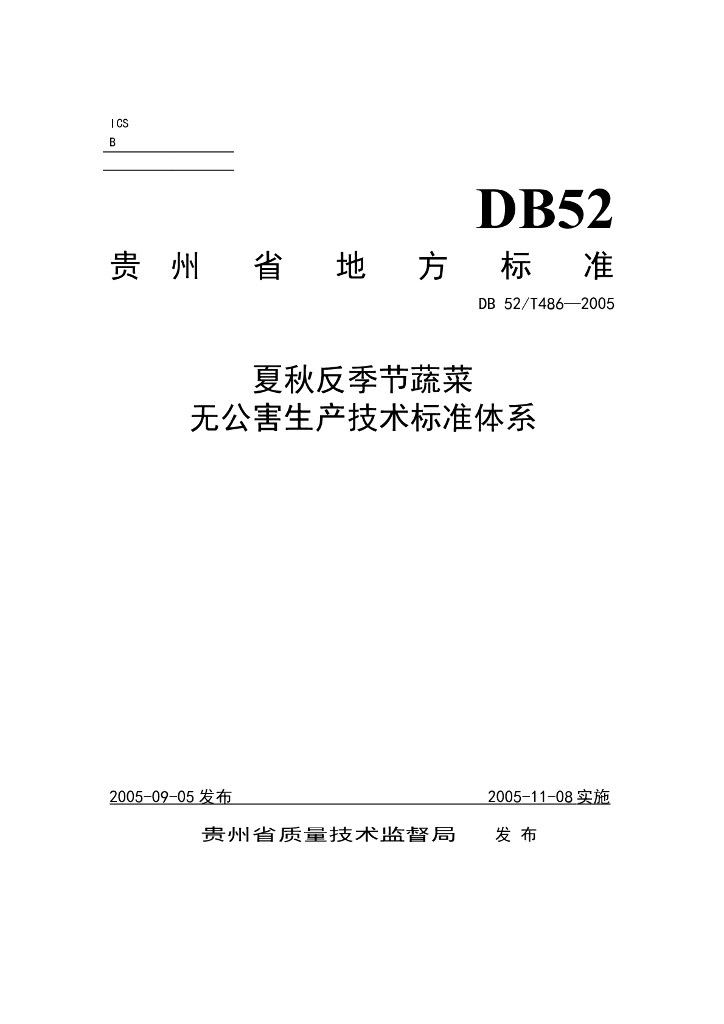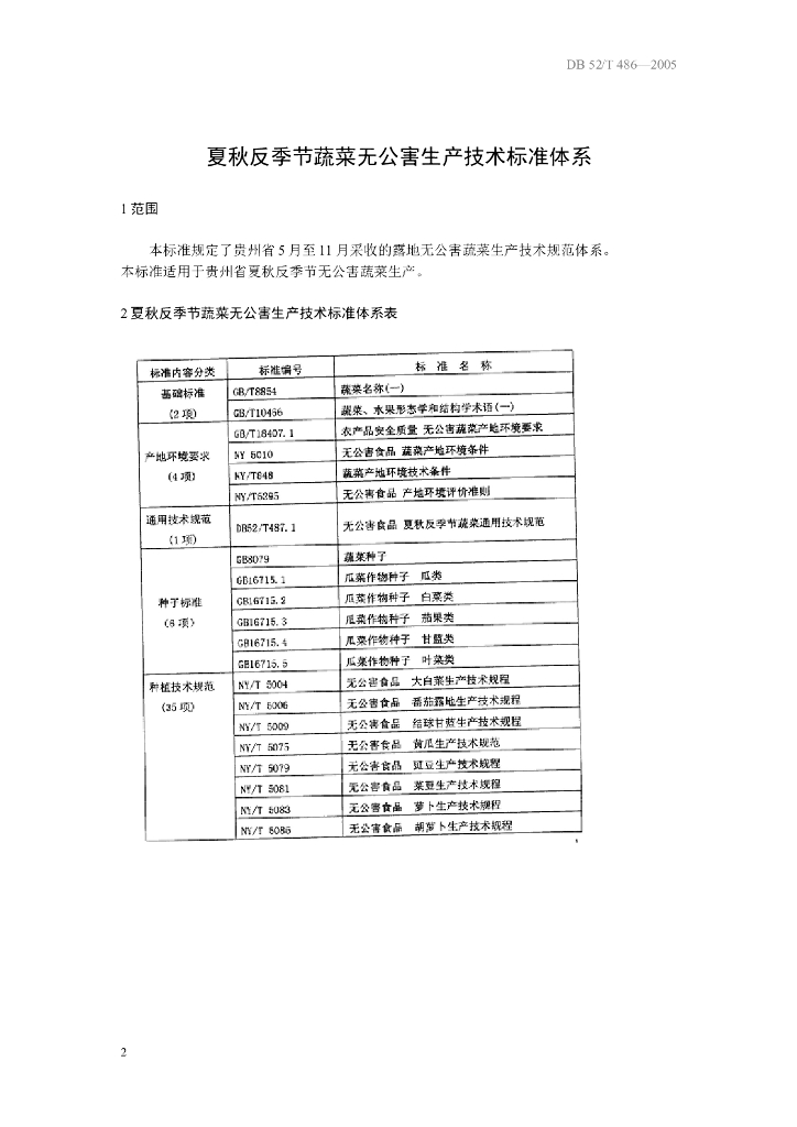 DB52/T 486-2005 夏秋反季节蔬菜无公害生产技术标准体系