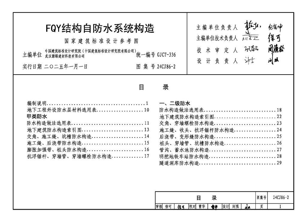 24CJ86-2 FQY结构自防水系统构造参考图集