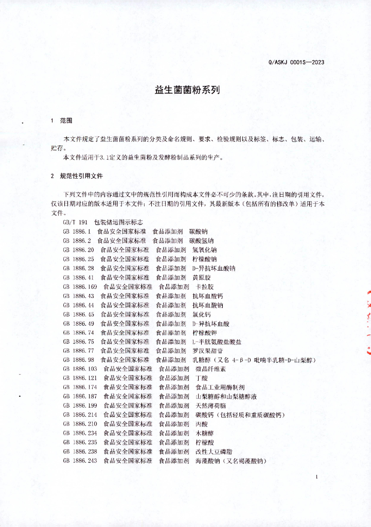 Q/ASKJ 0001S-2023 益生菌菌粉系列