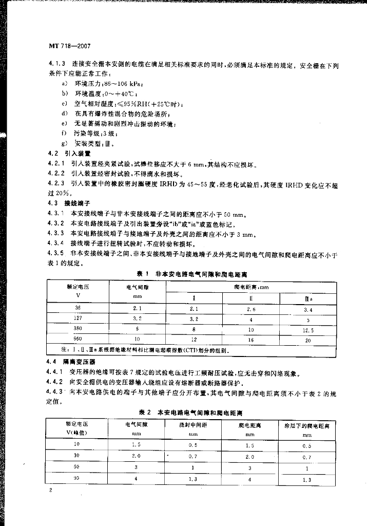 MT 718-2007 矿用隔爆兼本质安全型安全栅