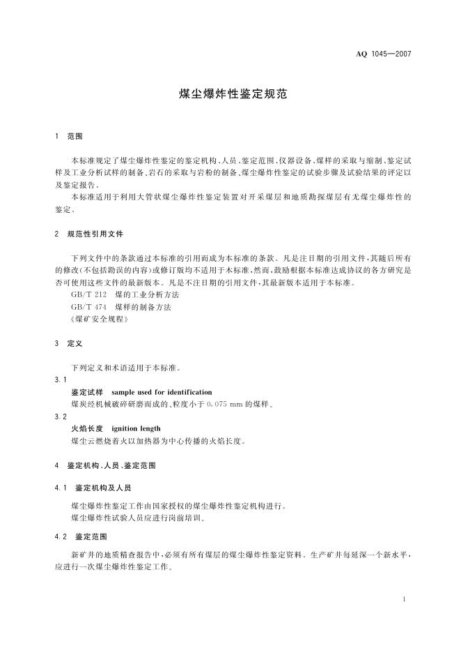 AQ 1045-2007 煤尘爆炸性鉴定规范