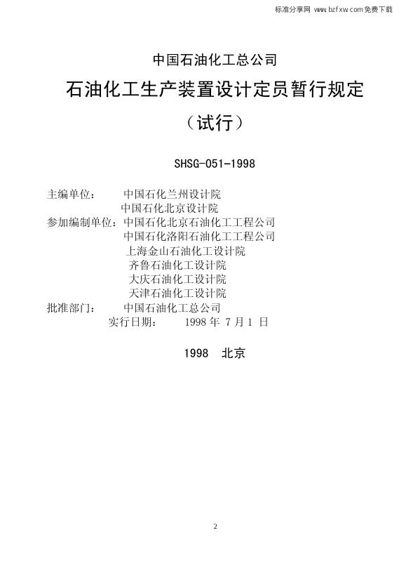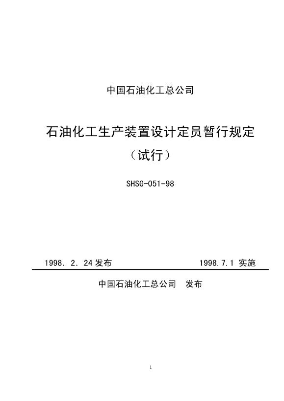 SHSG-051-1998 石油化工生产装置设计定员暂行规定