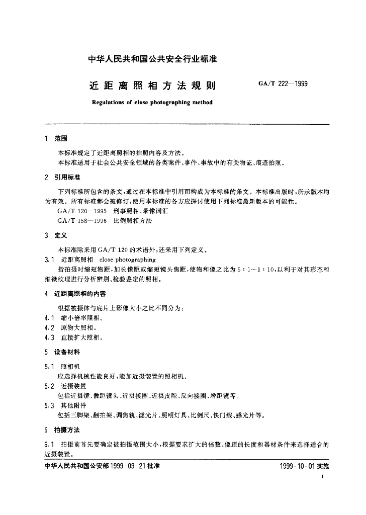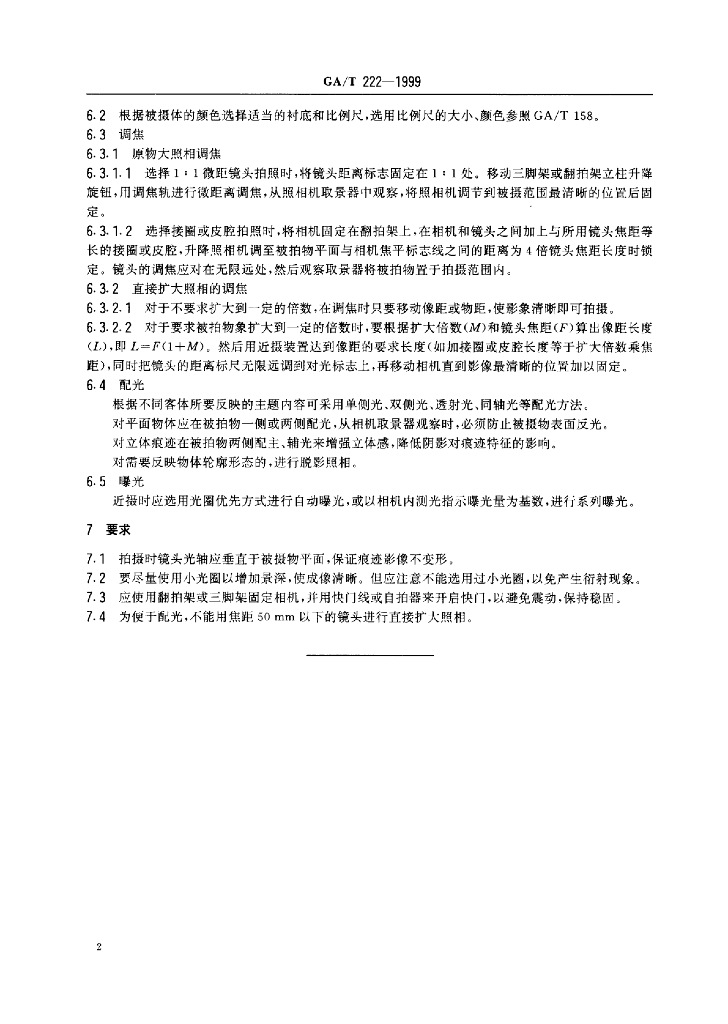 GA/T 222-1999 近距离照相方法规则标准