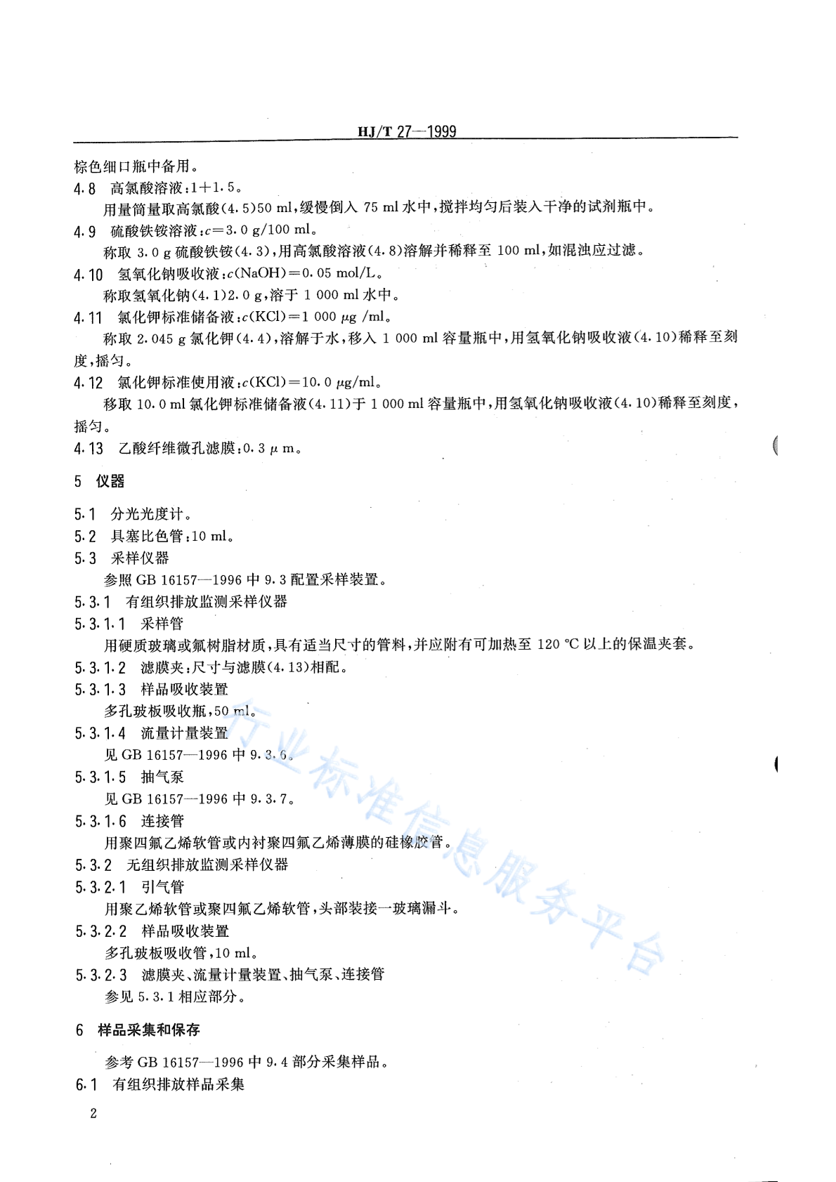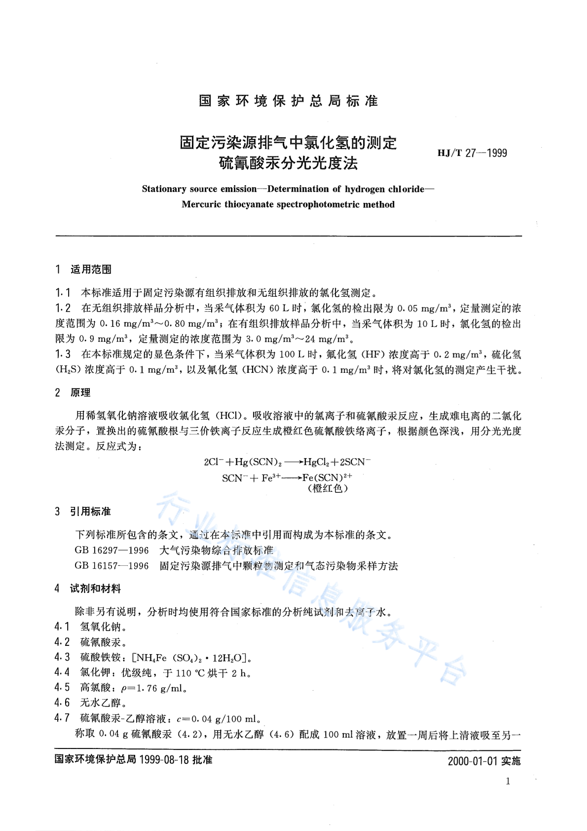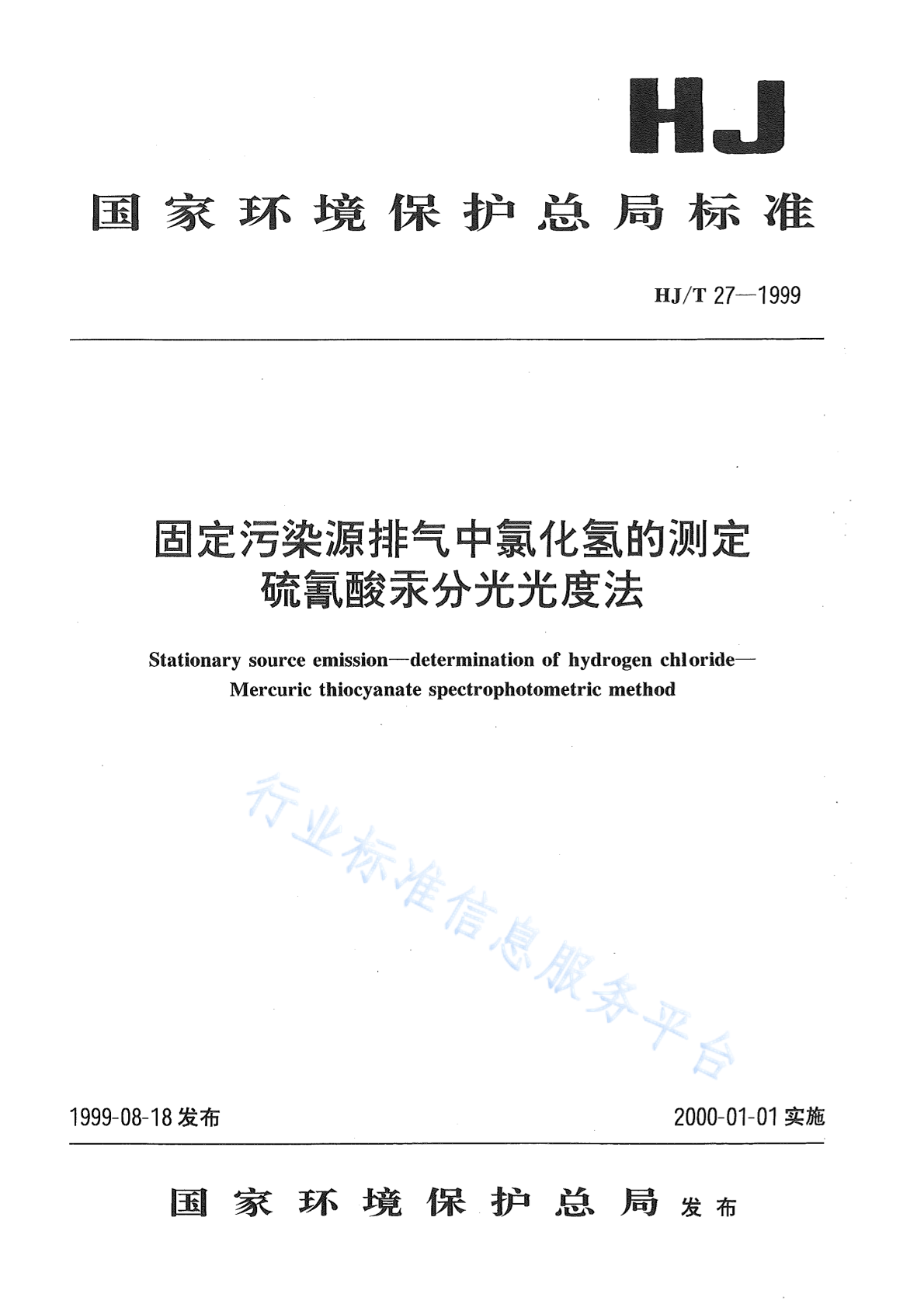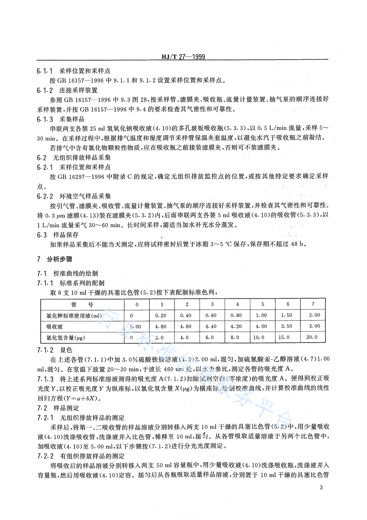 HJ/T 27-1999 固定污染源排气中氯化氢的测定 硫氰酸汞分光光度法