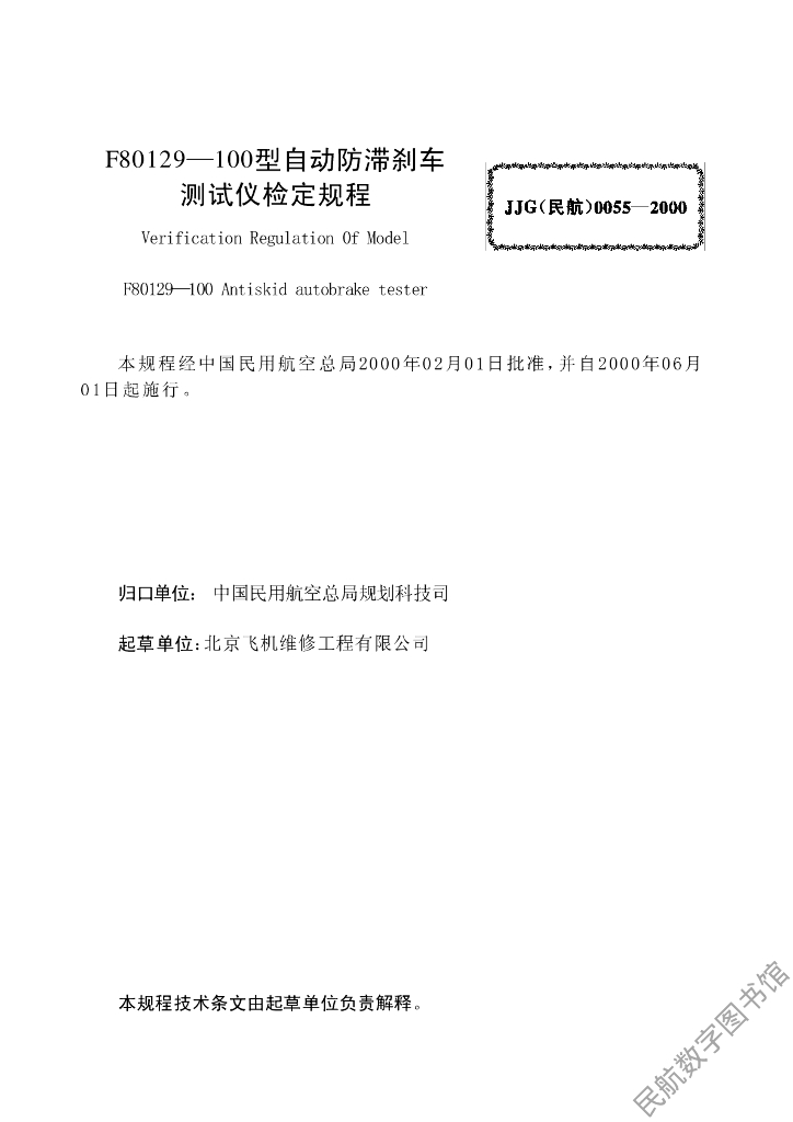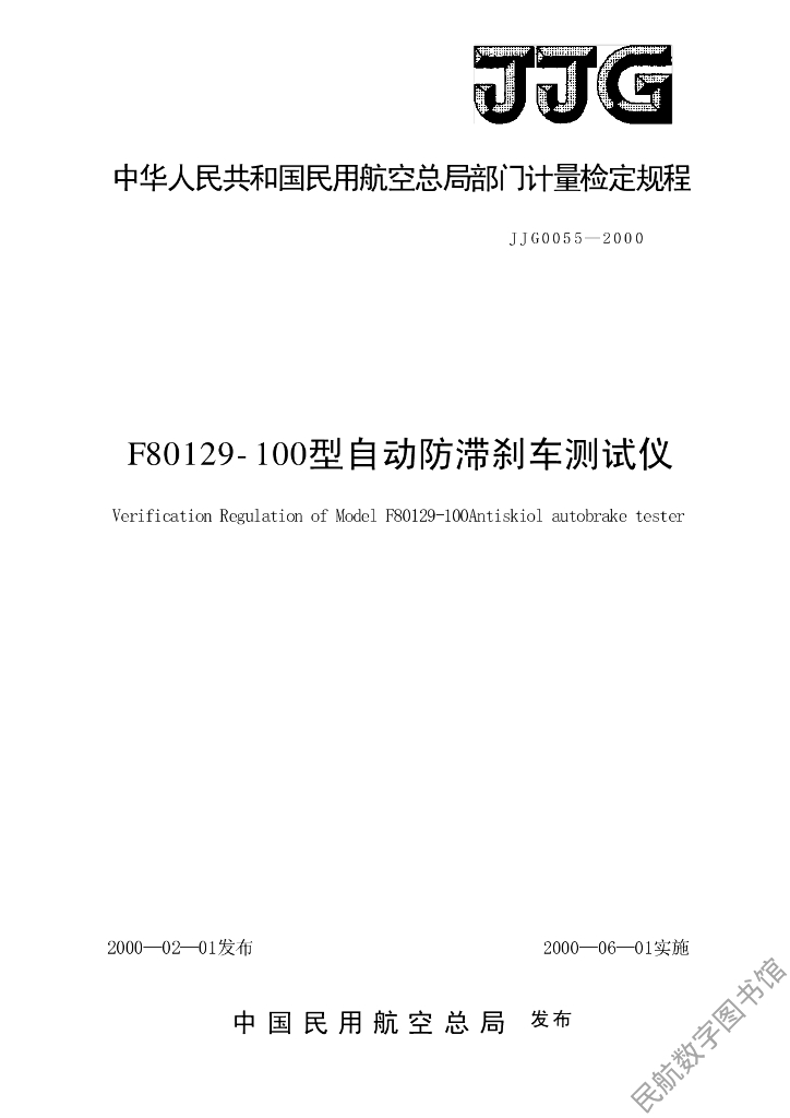 JJG(民航)0055-2000 F80129-100型自动防滞刹车测试仪检定规程