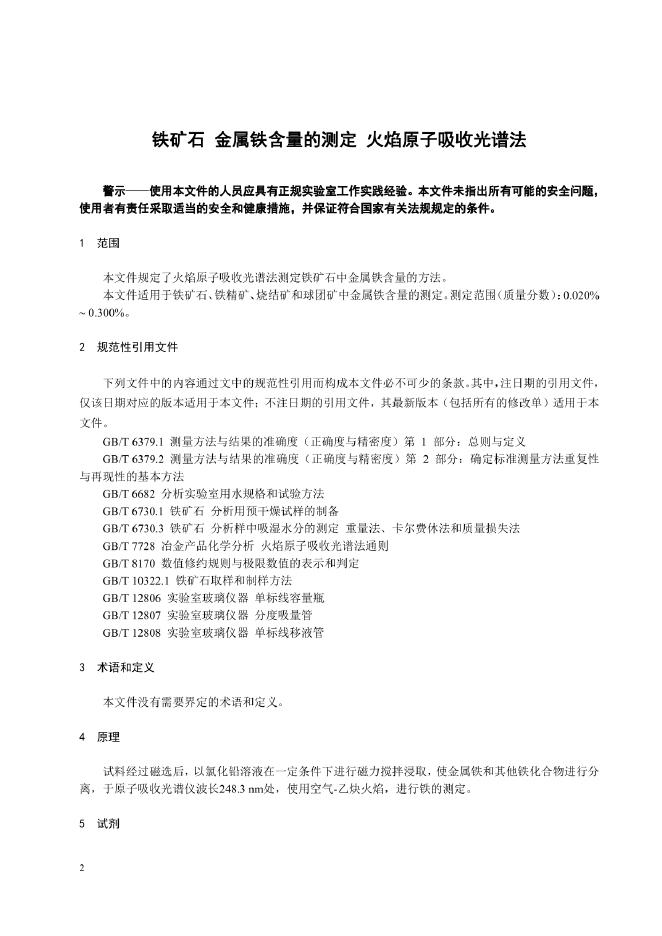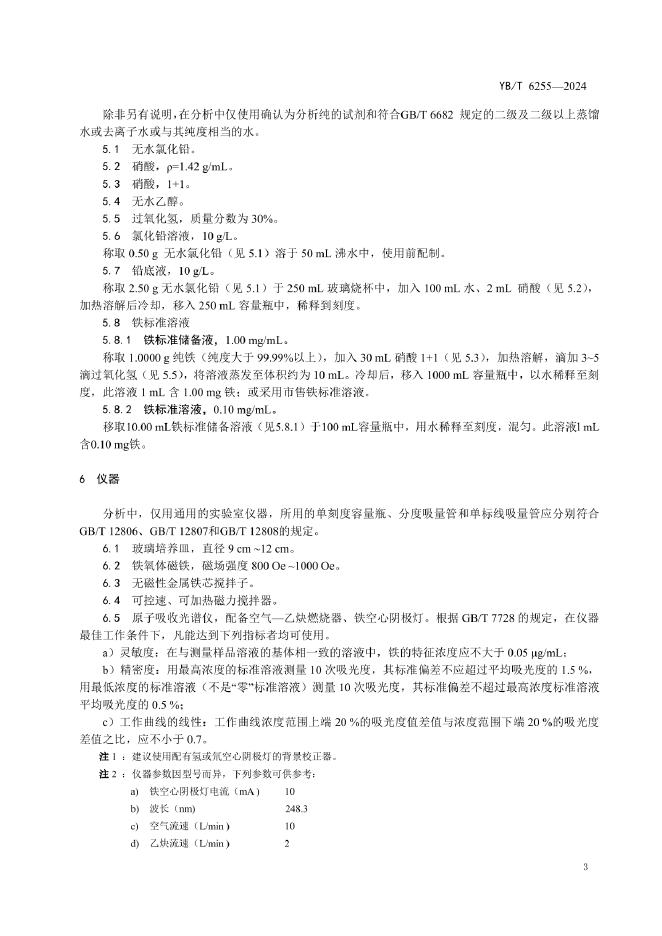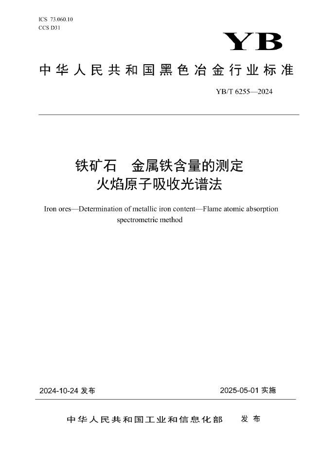 YB/T 6255-2024 铁矿石 金属铁含量的测定 火焰原子吸收光谱法
