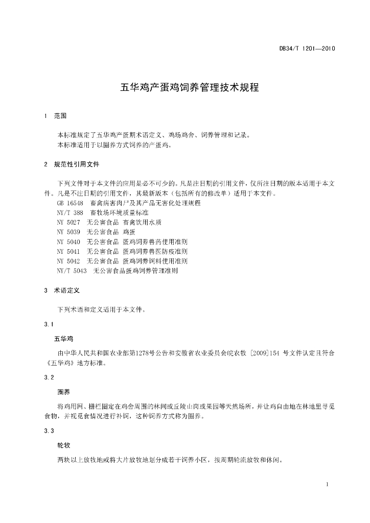 DB34/T 1201-2010 五华鸡产蛋鸡饲养管理技术规程