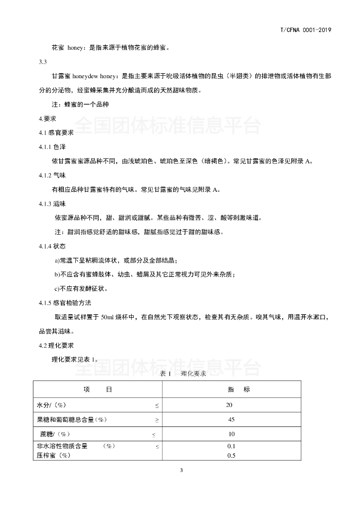 T/CFNA 0001-2019 甘露蜜