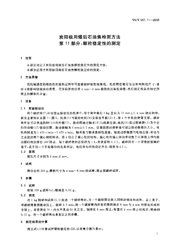 YS/T 587.11-2006 炭阳极用煅后石油焦检测方法 第11部分:颗粒稳定性的测定