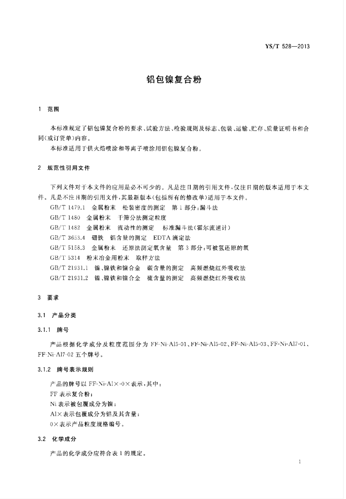 YS/T 528-2013 铝包镍复合粉