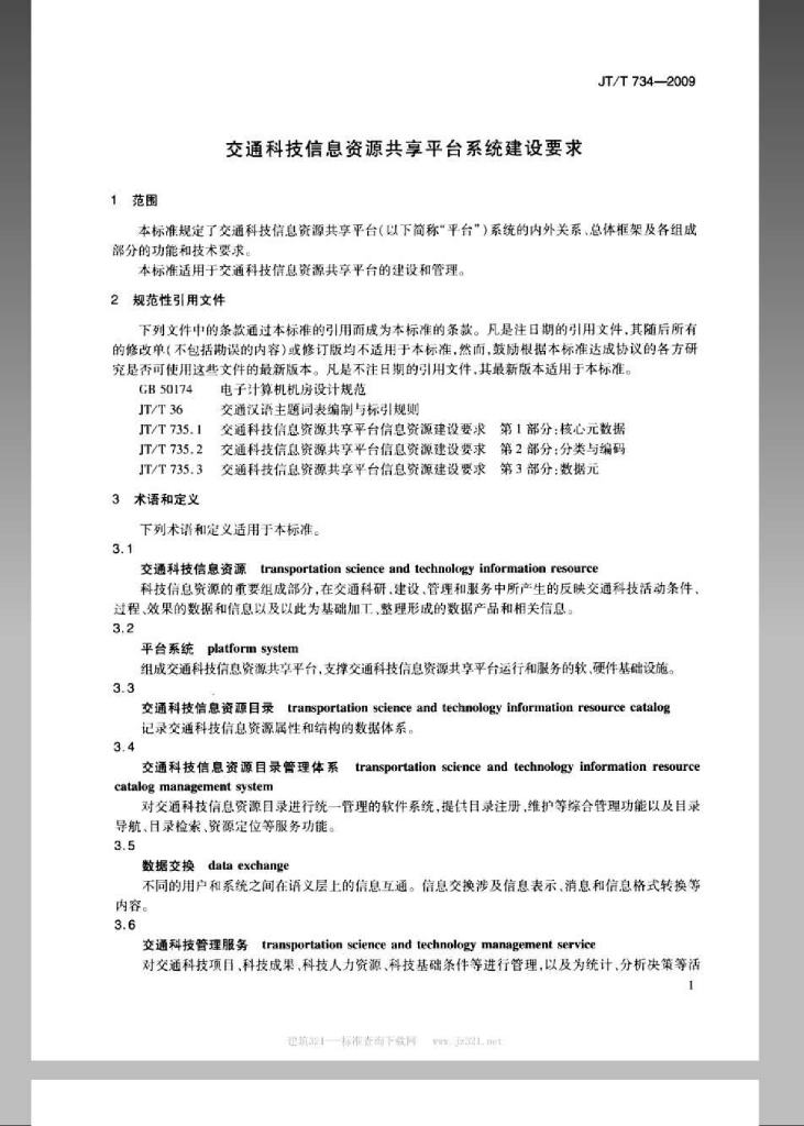 JT/T 734-2009 交通科技信息资源共享平台系统建设要求